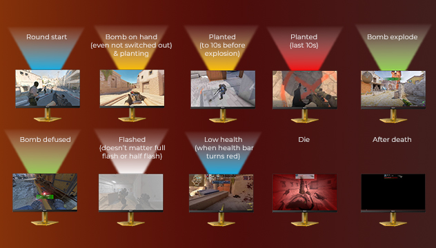 追加のCSライティング機能は磁気システムを採用しており、ゲーマーは高さ調整可能スタンド(HAS)に対して45°または90°の角度で簡単に取り付けることができます。この柔軟なセットアップはCS2のゲームプレイと動的に同期し、ゲーム内アクションに反応するカスタマイズ可能なライティング効果で没入感を高めます。戦場の雰囲気をさらにレベルアップしましょう!