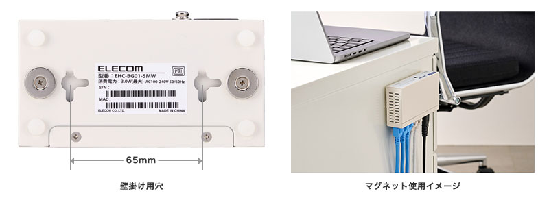 本体背面のマグネットを使って金属面へ設置することができます。