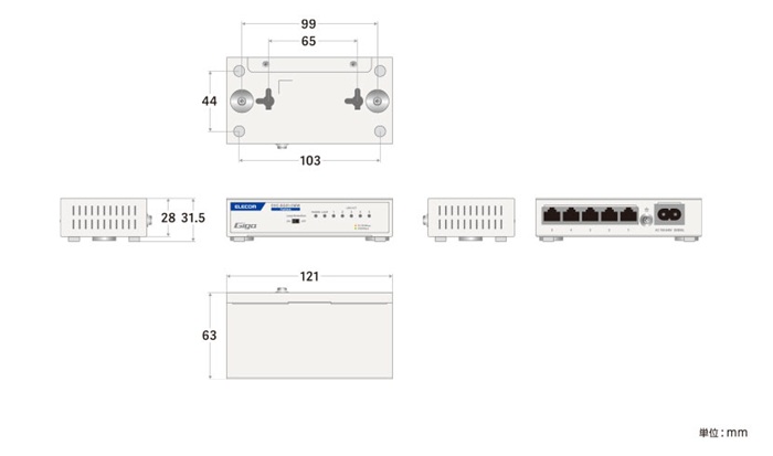 Giga(1000BASE-T)対応、電源内蔵のメタル筐体5ポートスイッチングハブです。