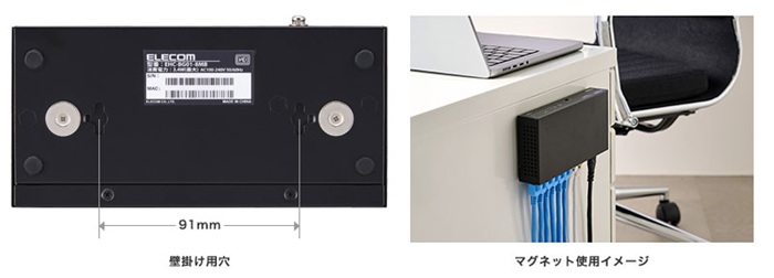 本体背面のマグネットを使って金属面へ設置することができます。