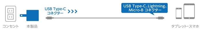 USB Power Delivery認証済みのUSB Type-C™(USB-C™)ポートを搭載し、対応するスマートフォン、タブレットなどを超高速充電できるUSB AC充電器です。