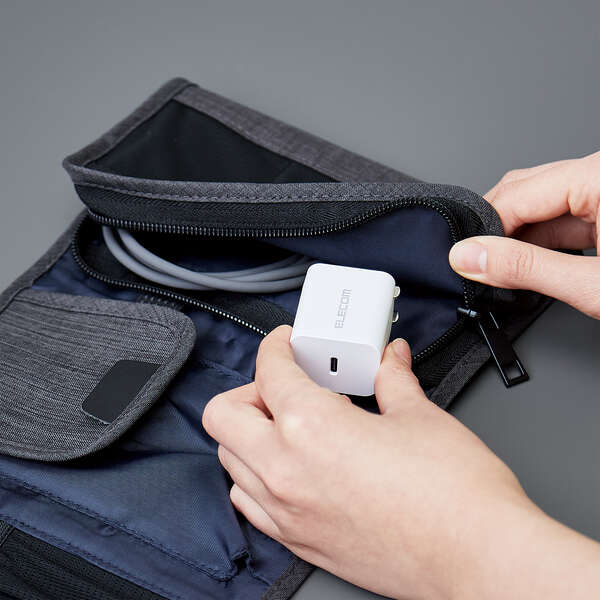 未使用時はコンセントプラグを折りたたんで充電器本体に収納可能です。スッキリとコンパクトに収納できるので、持ち運びにも便利です。