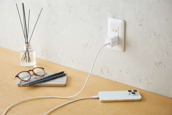 USB Power Deliveryに対応したUSB Type-C™ポートを搭載し、対応するスマートフォン、タブレットなどを充電できるUSB AC充電器です。