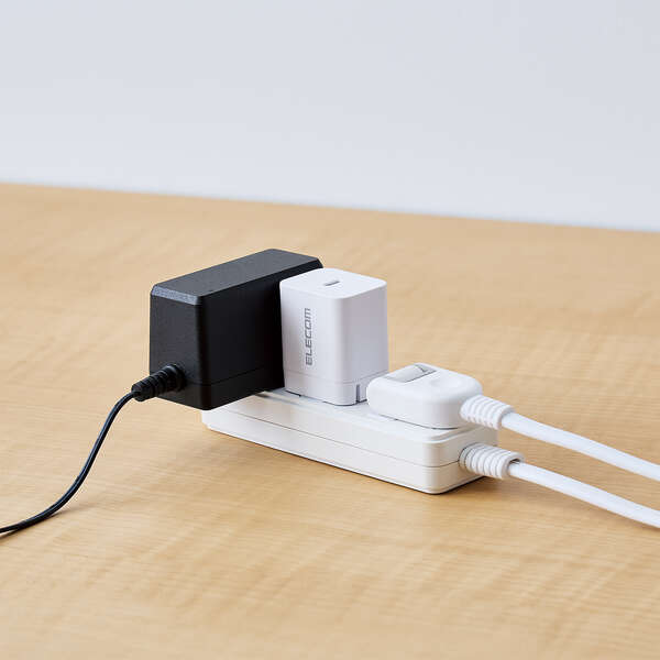 複数口があるコンセントに挿すとき、隣の差込口に干渉しないスリムなデザインです。