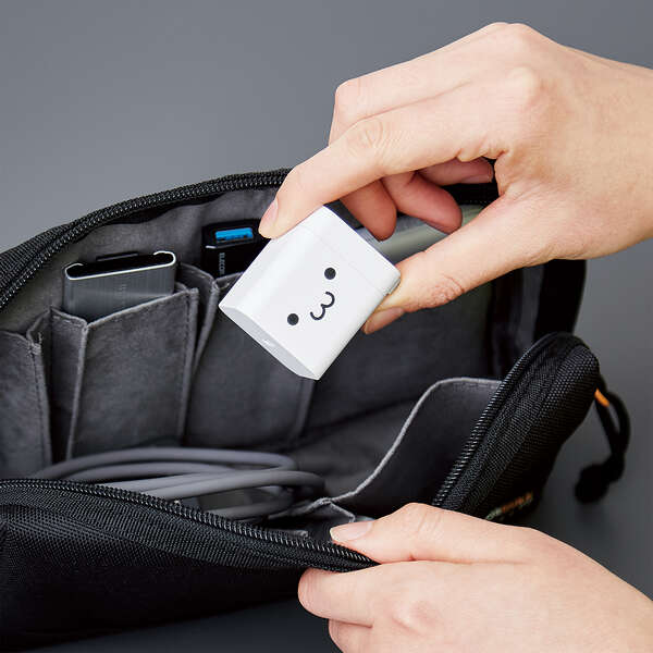 未使用時はコンセントプラグを折りたたんで充電器本体に収納可能です。スッキリとコンパクトに収納できるので、持ち運びにも便利です。
