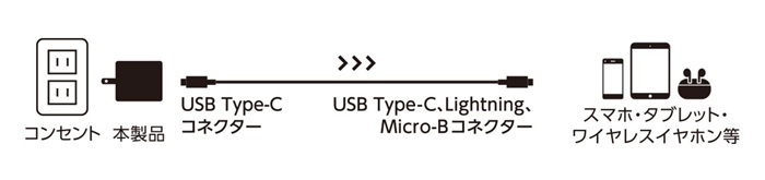 | 対応機種 | USB Type-CポートからUSB Power Delivery (20W)の規格内で充電可能な機器 |