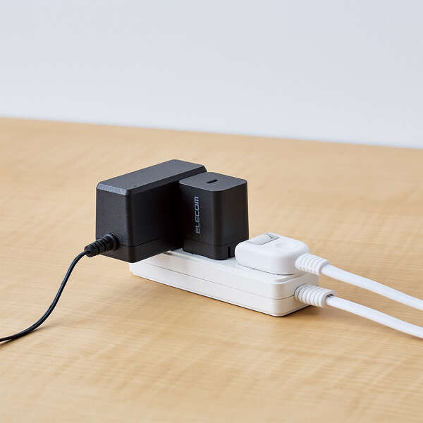 複数口があるコンセントに挿すとき、隣の差込口に干渉しないスリムなデザインです。
