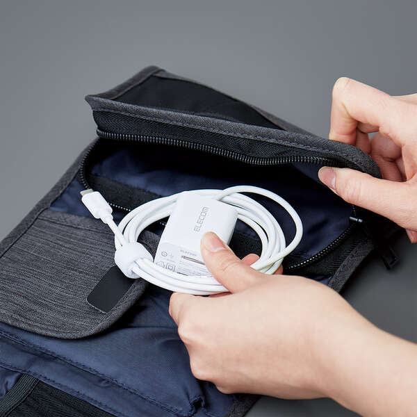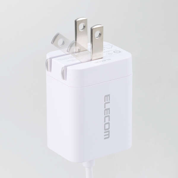 未使用時はコンセントプラグを折りたたんで充電器本体に収納可能です。スッキリとコンパクトに収納できるので、持ち運びにも便利です。