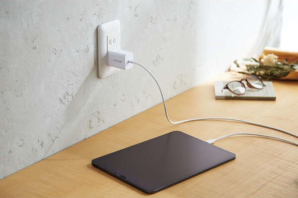 USB Power Deliveryに対応したUSB Type-Cプラグを搭載し、機器に応じて出力が5V/3A、9V/2.22A、12V/1.67Aと可変し、iPhoneなどのスマートフォン、iPadなどのタブレットを高速充電できます。