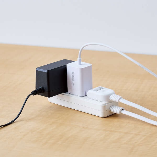 複数口があるコンセントに挿すとき、隣の差込口に干渉しないスリムなデザインです。