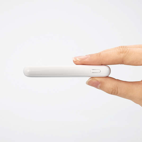 小さくて軽く、持ち運びにちょうどいい、15W出力、容量5000mAhのコンパクトなモバイルバッテリーです。