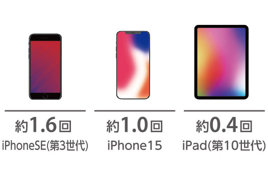 ※ 満充電した本製品で電源オフの状態のスマートフォンを充電する際の目安回数です。充電中に電源を入れたり、機器を使用したりしている場合は記載の数値まで充電できない場合があります。