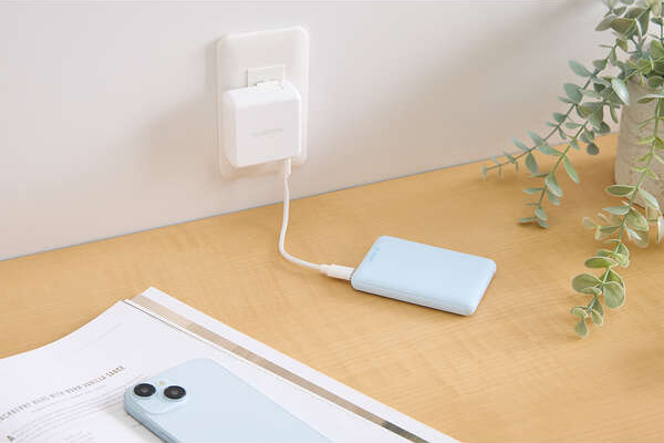 小さくて軽く、持ち運びにちょうどいい、15W出力、容量5000mAhのコンパクトなモバイルバッテリーです。