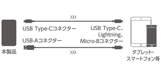 | その他 | iOS端末で使用する場合は別途iOS用ケーブルをご用意ください。 |