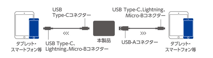 | 対応機種 | iPhoneおよびUSB端子で充電するスマートフォン、タブレット、他小型電子機器 |
