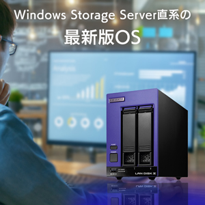 「Windows Server IoT 2025 for Storage」は、Windows Server 2025をベースとしたファイルサーバー専用のOSです。法人向けNAS筐体にプリインストールされ、Windows Server 2025のファイルサーバーを構築する場合と同等の環境をご提供します。