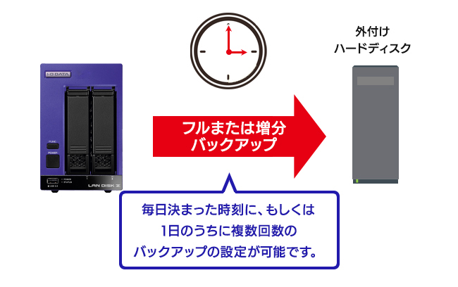 ※NASをバックアップ先とする場合、メーカーのHDL-Zシリーズ、およびHDL-HB、HDL-HAB、HDL-XAB、HDL-LV、HDL-LENシリーズのみご利用可能です。