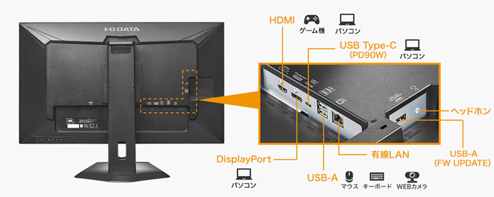 そのほか、HDMI、DisplayPortを搭載しているので、幅広い機器をつないでご利用いただけます。