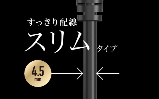 直径4.5mmのスリムケーブルを採用し、スッキリとキレイな配線が可能です。