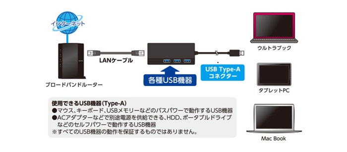 | 供給可能電流 | 【USB3.0接続時】3ポート合計約600mA以内、【USB2.0接続時】3ポート合計約300mA以内 |