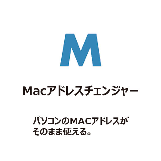 本製品のMACアドレスを変更できるソフト「MACアドレスチェンジャー」(メーカーホームページよりダウンロード)を使用することで、オフィスなどの予め登録されたMACアドレスのみ通信可能な環境でも、本製品を利用可能です。(Windowsのみ対応)