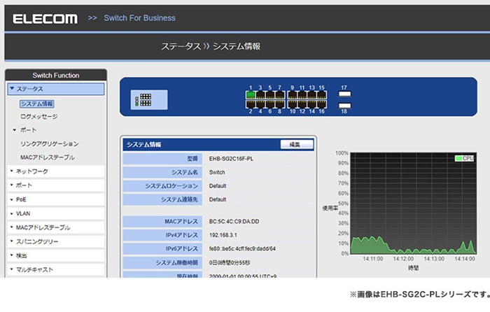 パソコンに標準搭載されているブラウザーだけで設定可能なWeb設定インターフェース採用。