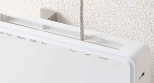 | 付属品 | 専用シリアルケーブル 1本、壁/天井設置用金具 1枚、シリアルナンバーラベル 2枚、ELECOMロゴステッカー 1枚、クイックセットアップガイド/安全にお使いいただくために 各1枚 ※セキュリティカバーは本体取り付け済み |