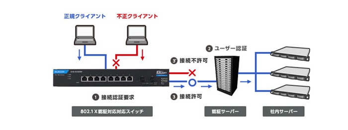 許可されたユーザ以外のネットワーク接続を防ぐIEEE802.1X認証対応