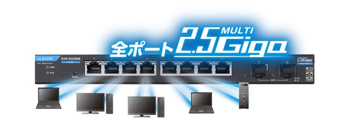 | 伝送速度 | 2.5Gbps(2.5GBASE-T)、1000Mbps(1000BASE-T)、100Mbps(100BASE-TX) |