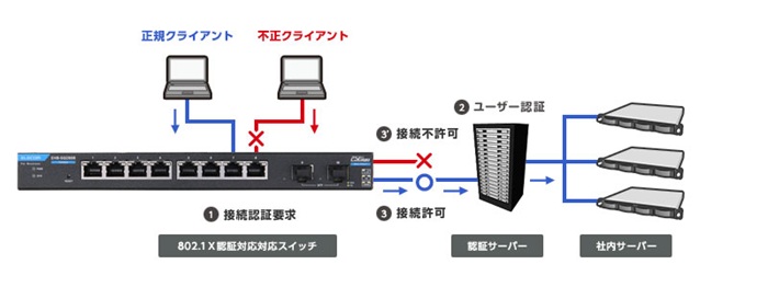 許可されたユーザ以外のネットワーク接続を防ぐIEEE802.1X認証対応
