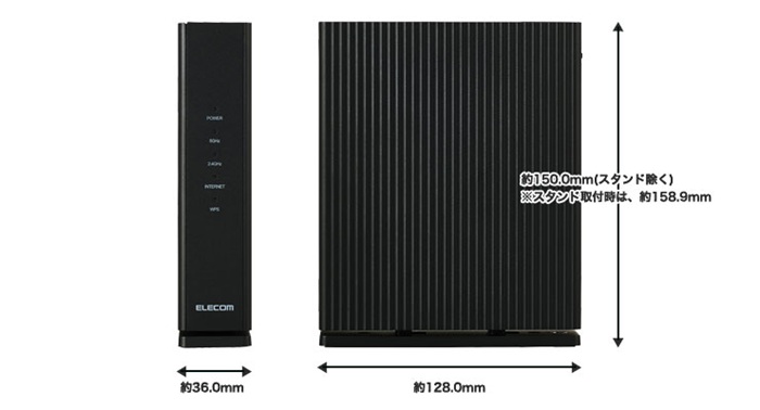 | 付属品 | ルーター本体1台、スタンド1個、専用ACアダプター1個、LANケーブル(約1m)1本、かんたんセットアップシート(初期値)1枚、マニュアル1枚 |