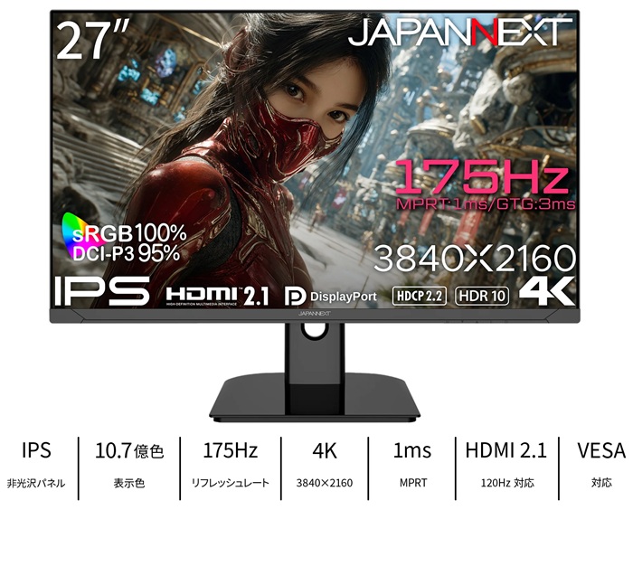 27” IPSパネル 4Kゲーミングモニター