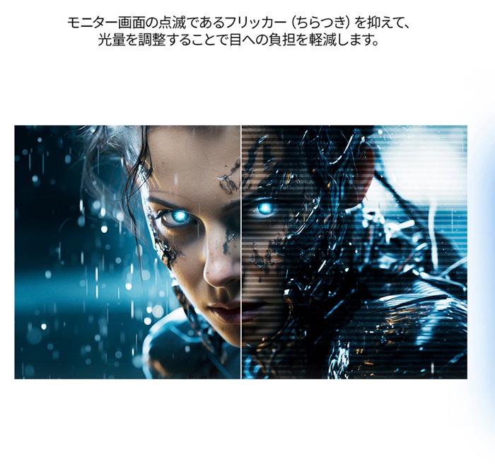モニターのリフレッシュレートをコンソールのグラフィック出力に合わせてリアルタイムで同期します。これによりティアリング(ちらつき)やコマ落ちを軽減することが可能です。