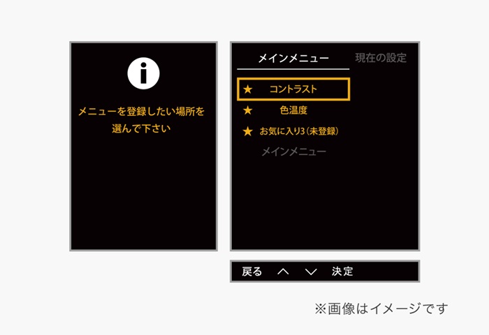 よく使用する設定項目を簡単にお気に入り登録することができます。お気に入りに登録することで効率よく操作することが可能です。お気に入りは3種類まで登録できます。
