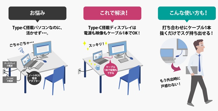 USB Type-C採用、ケーブル一本でスマート接続!