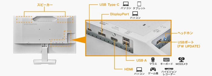 そのほか、HDMI、DisplayPortを搭載しているので、幅広い機器をつないでご利用いただけます。