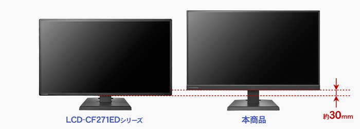 従来モデル(LCD-CF271EDシリーズ)より画面が約30mm高くなり、より画面が見やすくなりました。