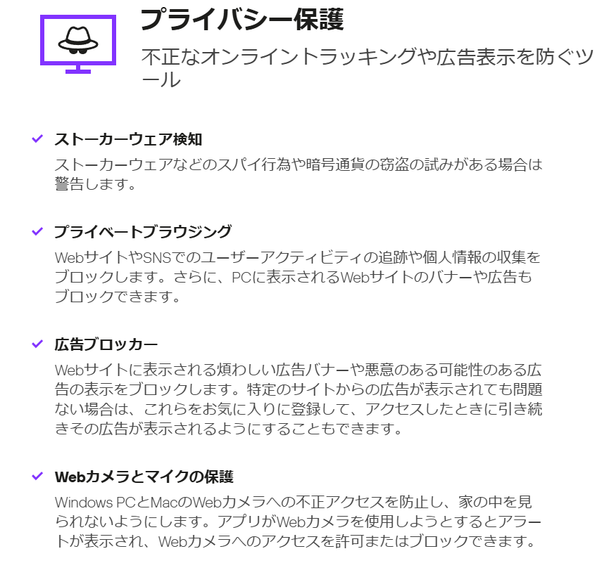 オンラインでショッピングや取引、ゲームをしているとき等、いつでもユーザーとデバイスの安全な状態を保ちます。