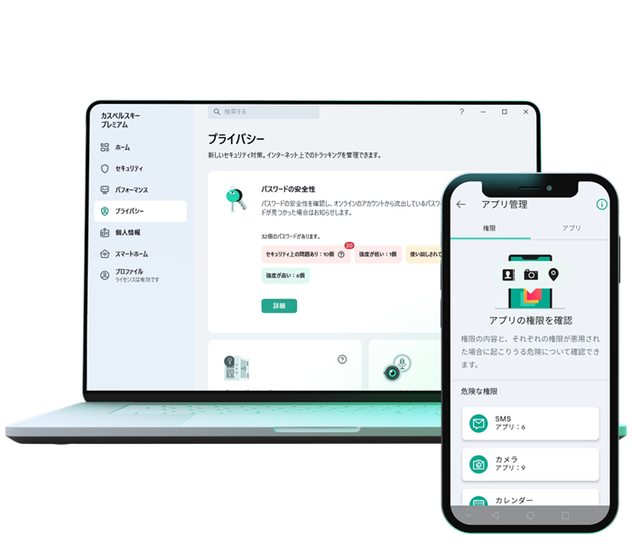 カスペルスキー プレミアムは、すべてのデバイスをネットの脅威から保護する総合的なセキュリティソフトです。セキュリティ、パフォーマンス、プライバシー、個人情報の4点において完全に保護する機能が搭載されています。