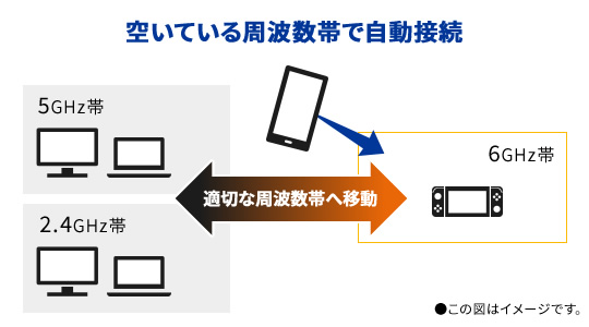 - ※各周波数帯に接続する子機は、Wi-Fiがその周波数帯に対応している必要があります。