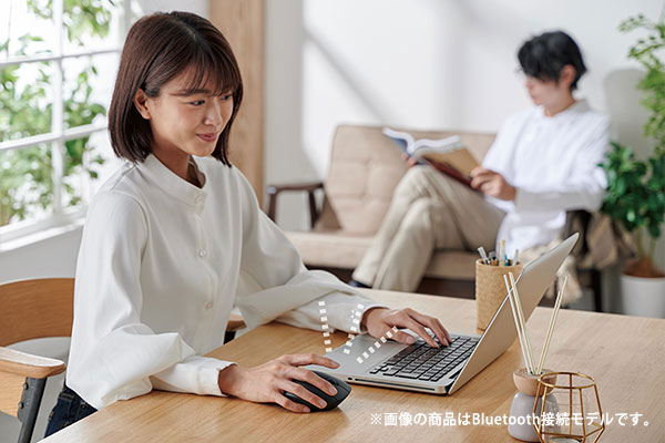 クリック音が静かなため、ミーティング中の使用やリビング・カフェ、シェアオフィスなど周りに人がいる場面でも音を気にせず使えます。