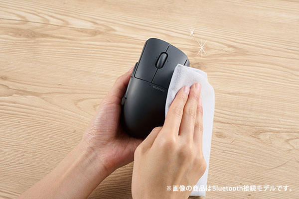 継ぎ目が少なくホコリが溜まりにくい設計に加え、マウスの表面に抗菌加工を施し、いつでも清潔さを保ちます。抗菌加工により、マウスの表面に付着した菌の繁殖を抑えて清潔に保ちます。(抗菌範囲:マウス筐体、印刷部分)