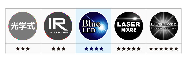 ほぼ全ての場所で使える、Blue LED センサー採用