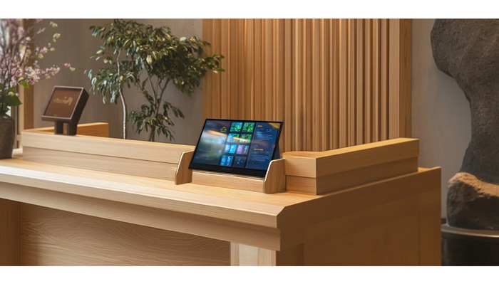 受付などのデジタル案内もUSB-Cケーブル一本で完結します