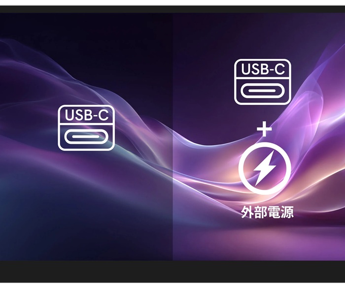 USB-C接続のみの場合、接続機種の給電能力に合わせて明るさを抑えて表示します。