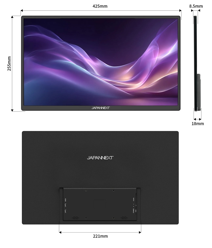 | 外形寸法 | 高255×幅425×奥行18mm、スタンド幅 221mm |