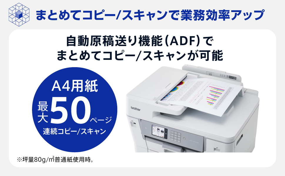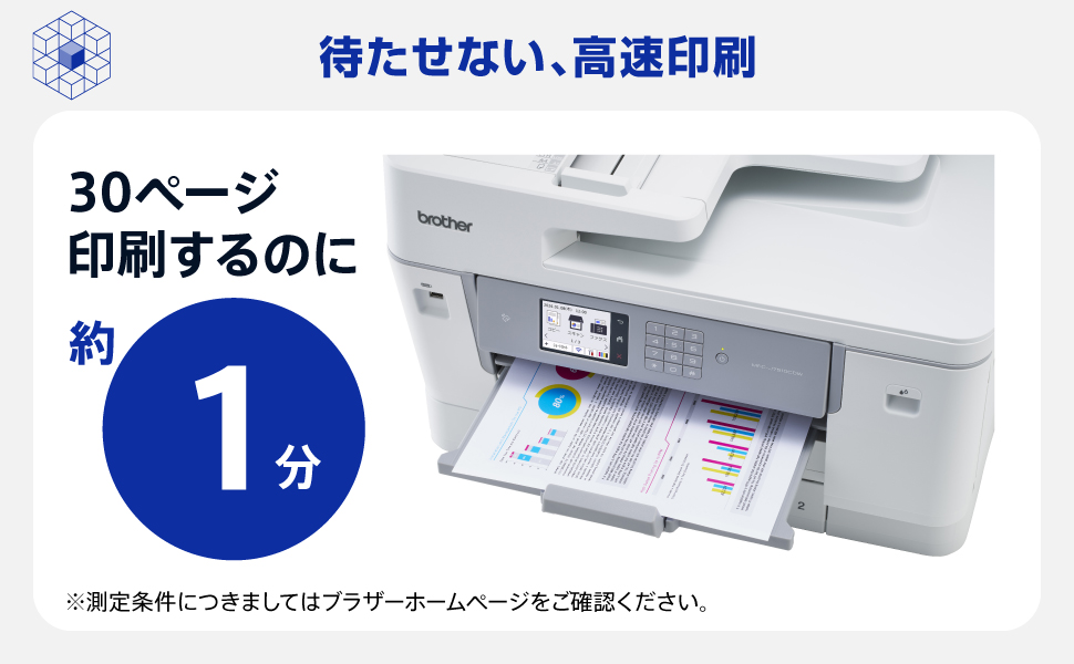 高速印刷プリンターで業務の待ち時間を短縮。プリンター・コピー・スキャン・FAXを一台に完結させた、生産性を一気に引き上げるA3対応ビジネスプリンター複合機。