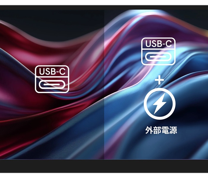 USB-C接続のみの場合、接続機種の給電能力に合わせて明るさを抑えて表示します。