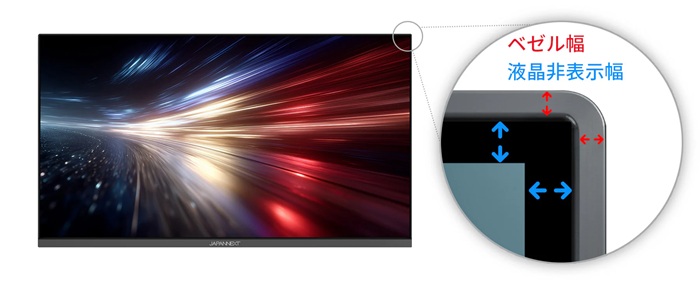 ベゼル幅:上左右1.5mm 液晶非表示幅:上左右4mm