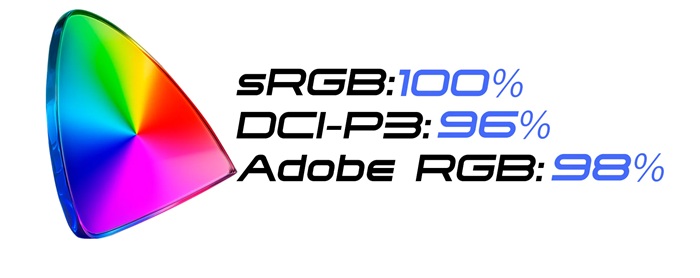 10.7億色表示に対応した高性能パネルを採用。sRGB:100%、DCI-P3:96%、Adobe RGB:98%の広色域により、色彩をリアルかつ鮮やかに描き出します。